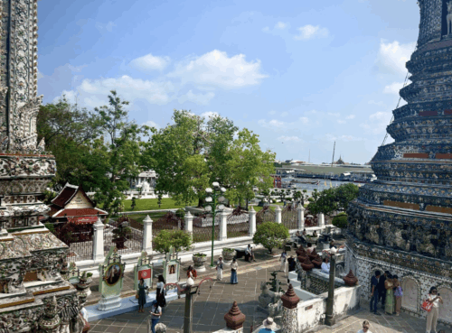 On March 14, 16 Fieldston Upper students and 3 teachers started their journey to Bangkok, Thailand, Siem Reap, Cambodia and Ho Chi Minh City, Vietnam. On the 16, after a 25 hour connecting flight to Bangkok, we started our trip with a boat ride along the Chao Phraya to see Wat Arun, the Chakkri Dynasty Royal Temple and the Grand Palace of King X: Vajiralongkorn. For dinner, we took a boat across a river to a fine dining restaurant where we watched traditional Thai dances while eating lemongrass soup, prawns, potatoes, grilled oranges, leaf-wrapped spices, and vegetable-shaped tapioca filled with bean paste for dessert.