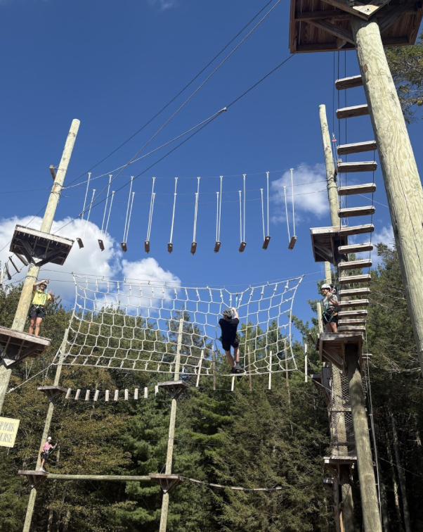 Once everyone was packed and ready, the group loaded onto buses and headed north. After the hour-and-a-half long ride to Rock Hill, New York, the seniors settled into their bunks before jumping straight into a day packed with activities. From climbing on the ropes course to taking a dip in the lake to playing competitive games of pickleball and basketball, the Class of 2026 spent the day reconnecting with friends and starting their final year together on a high note.