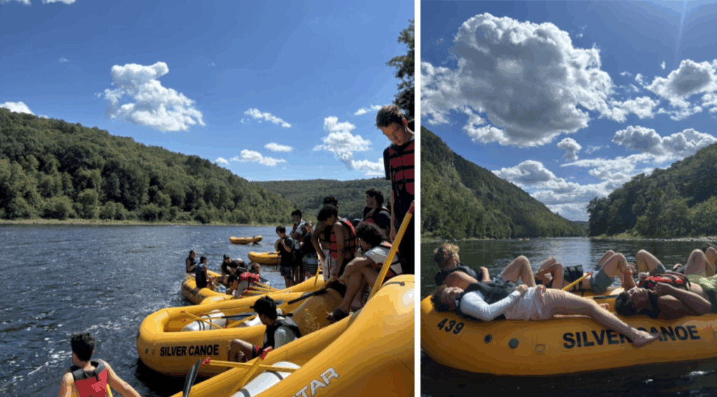 After a good night’s sleep, the Class of 2026 packed up their bags, grabbed breakfast, and got ready for the highlight of the trip: rafting. Dressed in bathing suits and sunscreen, the seniors loaded onto buses and headed to the Delaware River for a full day on the water.