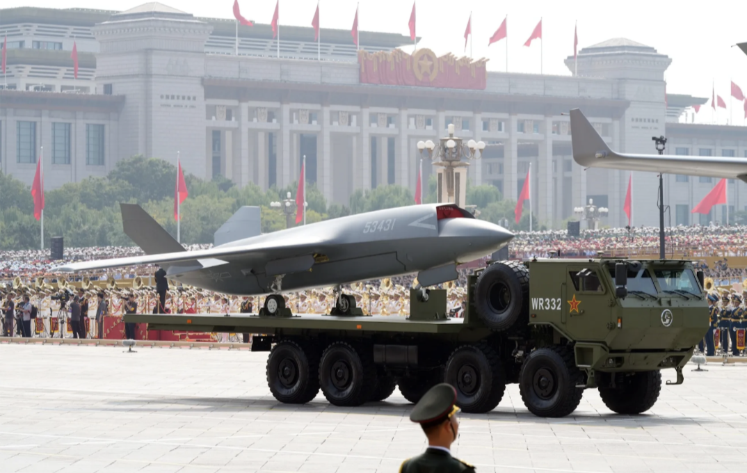 China displays an unmanned aerial vehicle during a military parade marking the 80th anniversary of victory over Japan and the end of World War II, in Beijing’s Tiananmen Square on September 3rd 2025. (Source: Bloomberg)