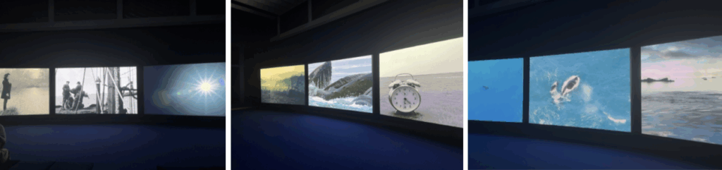 The second room immerses viewers in the stunning footage of John Akomfrah’s Vertigo Sea, a forty-minute, three-channel video installation presented for the first time in New England. Through a montage spanning from the age of Ahab to the present, Akomfrah explores our simultaneous fascination, exploitation and dependence on the sea. “It’s a very impactful viewing experience, especially with the surround sound—it’s old movie theater style,” said one visitor.