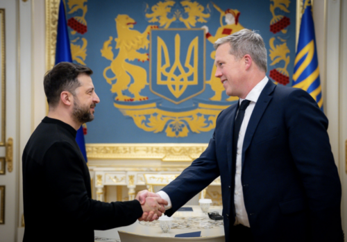 Army Secretary Dan Driscoll (Right) shakes hands with Ukrainian President Volodymyr Zelenskyy (left) in Kyiv, Ukraine, Nov. 20, 2025. (Source: POLITICO)