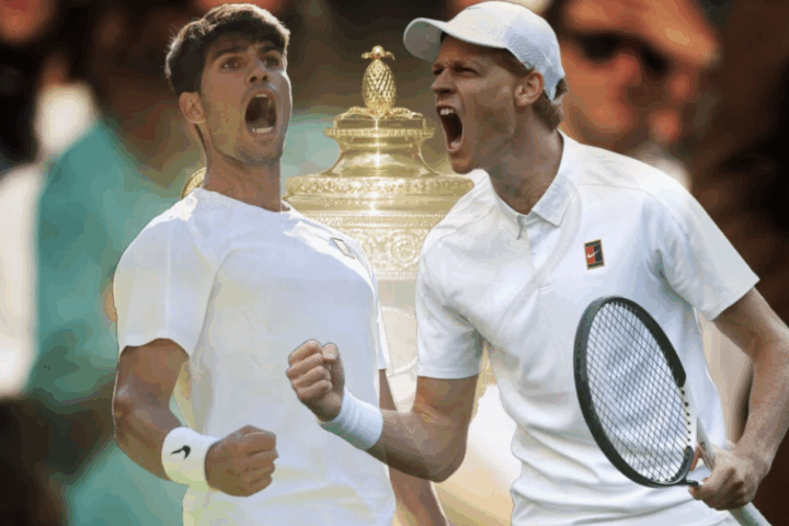 Triple championship point. Jannik Sinner, world No. 1, leads two sets to one, five games to three in the fourth set. Love-40. The Italian stands just one point away from claiming his